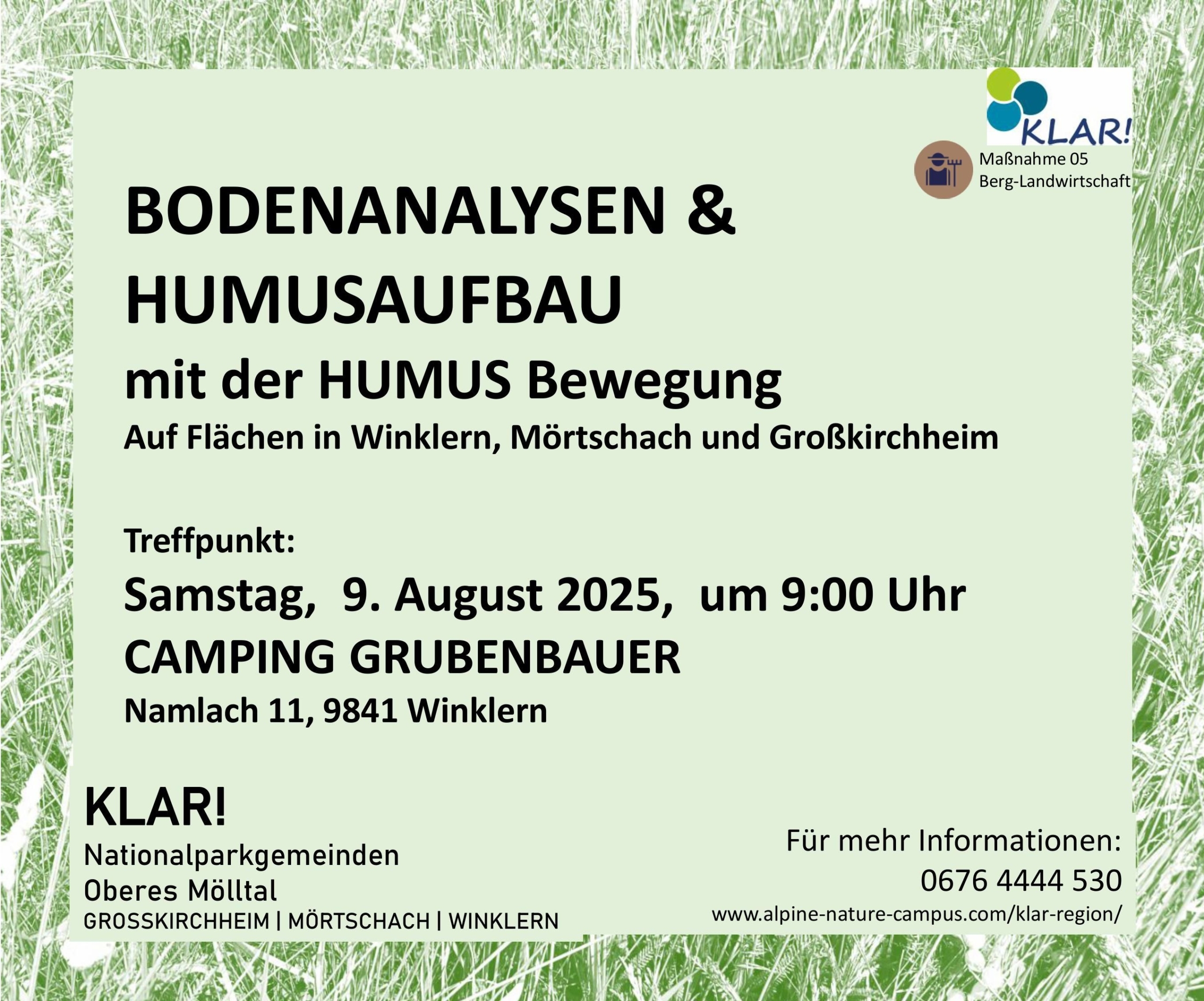 Um Anmeldung wird gebeten: +43 676 4444530 oder klar@alpine-nature-campus.com